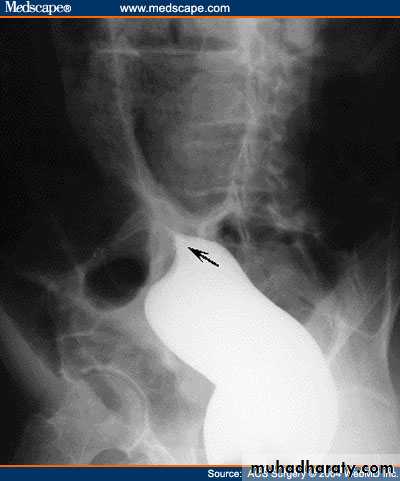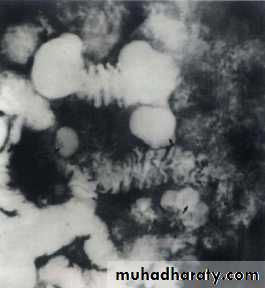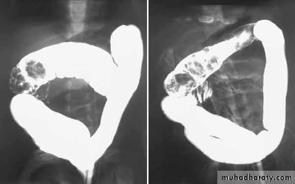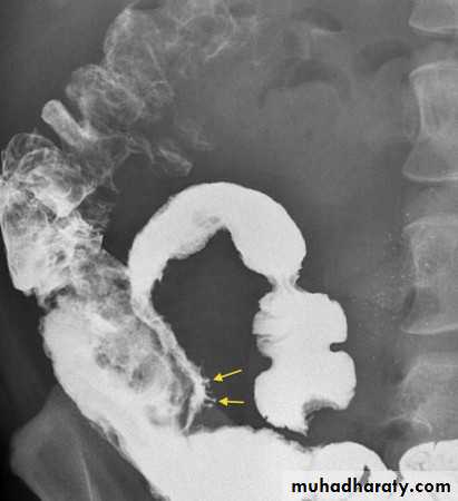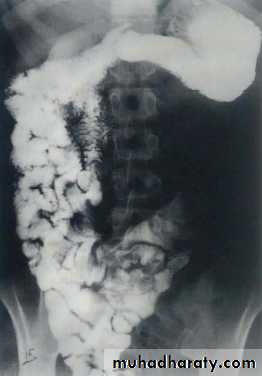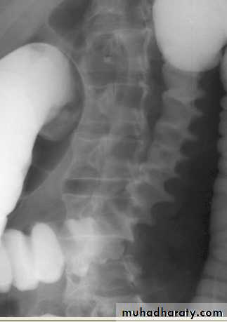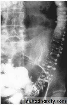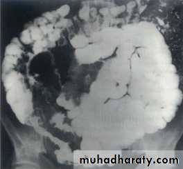 • Toxic dilatation of the colon: the dilatation is maximal in transverse colon more than 6 cm The haustra are lost or grossly abnormal . Ulcerative colitis is the commonest cause