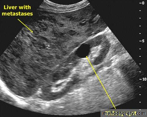 Metastases, notably from carcinoma of stomach, colon, pancreas, lung and breast are much more common than primary tumors.Metastases are often multiple, situated peripherally and of variable size.