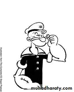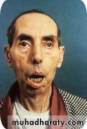 • Facial features: frontal balding in men, ptosis, hatchet face ^ shaped upper lip
