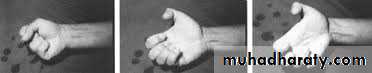 normal deltoidsbiceps, triceps commonly weak, forearm muscles are less involved resulting in a
