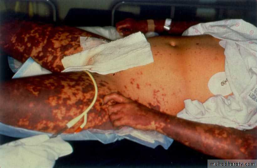 Bleeding into organs may occur eg, adrenal gland causing Waterhouse Friderichsen syndrome