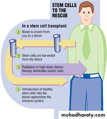 Hematopoitic stem cells can be obtained directly from the Bone marrow by multiple aspiration from the pelvic bones While the patient is under general anesthesia (BMT) Hematopoietic cells can be obtained from the peripheral Blood after stimulation with hematopoietic growth factor Such as (G-CSF), followed by leukopheresis (peripheral Stem cell transplantation