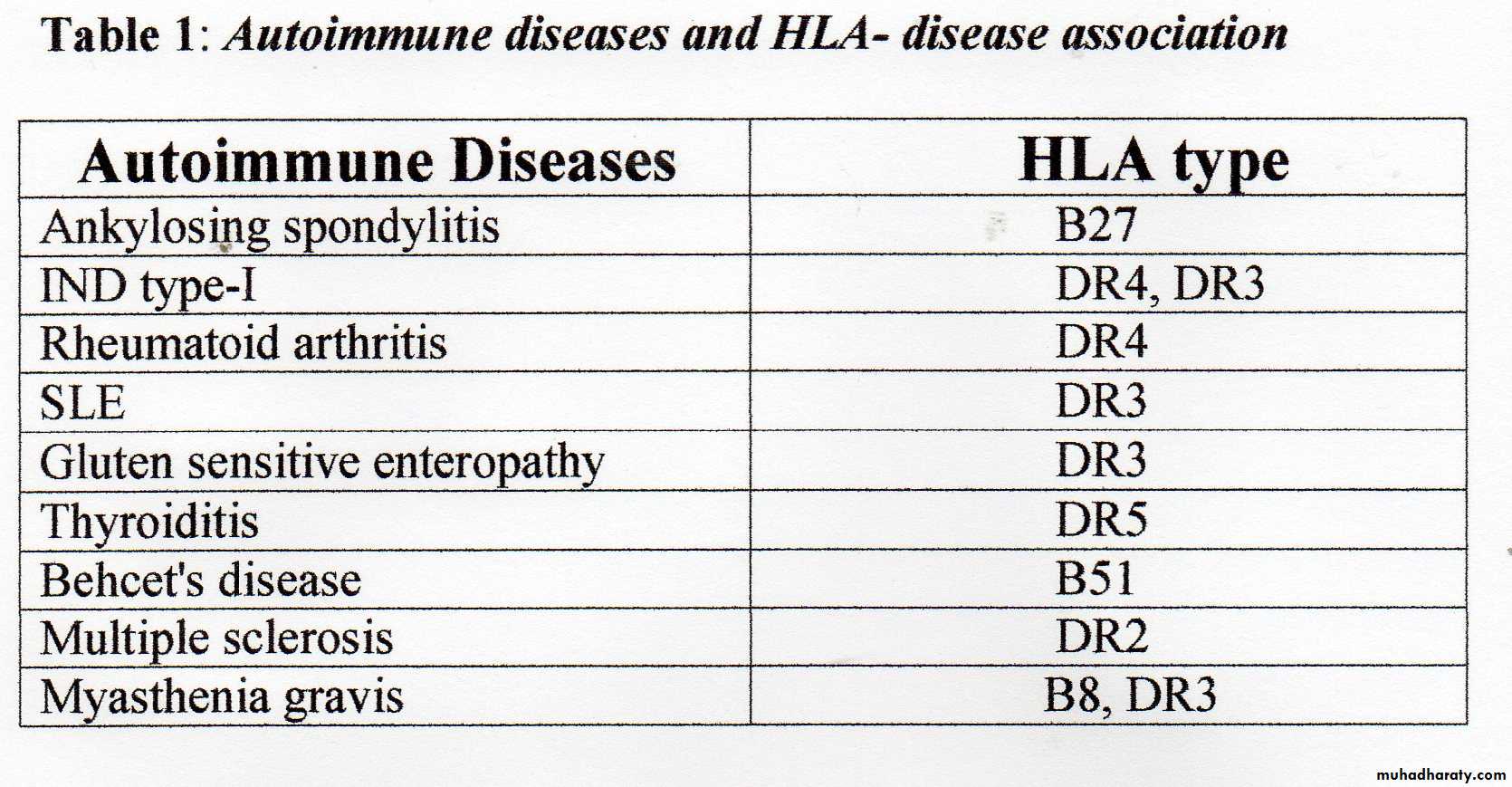 3. Most of autoimmune diseases appear to be associated with certain HLA antigens/ genes; each with relative risk (see Table 1).