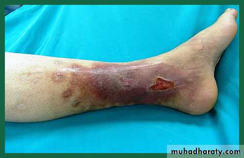 Neoplastic ulcer (squamous cell carcinoma and basal cell carcinoma).