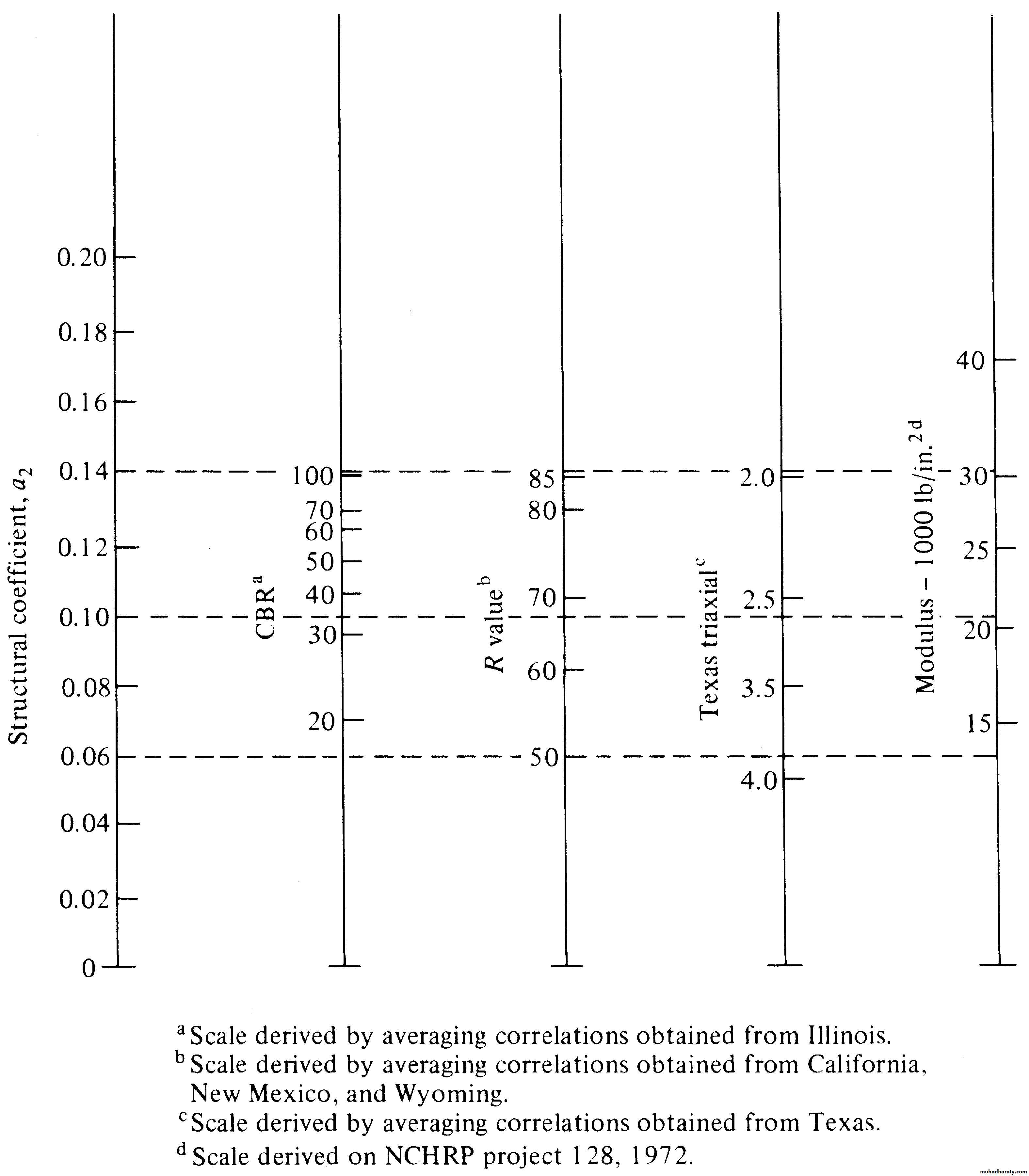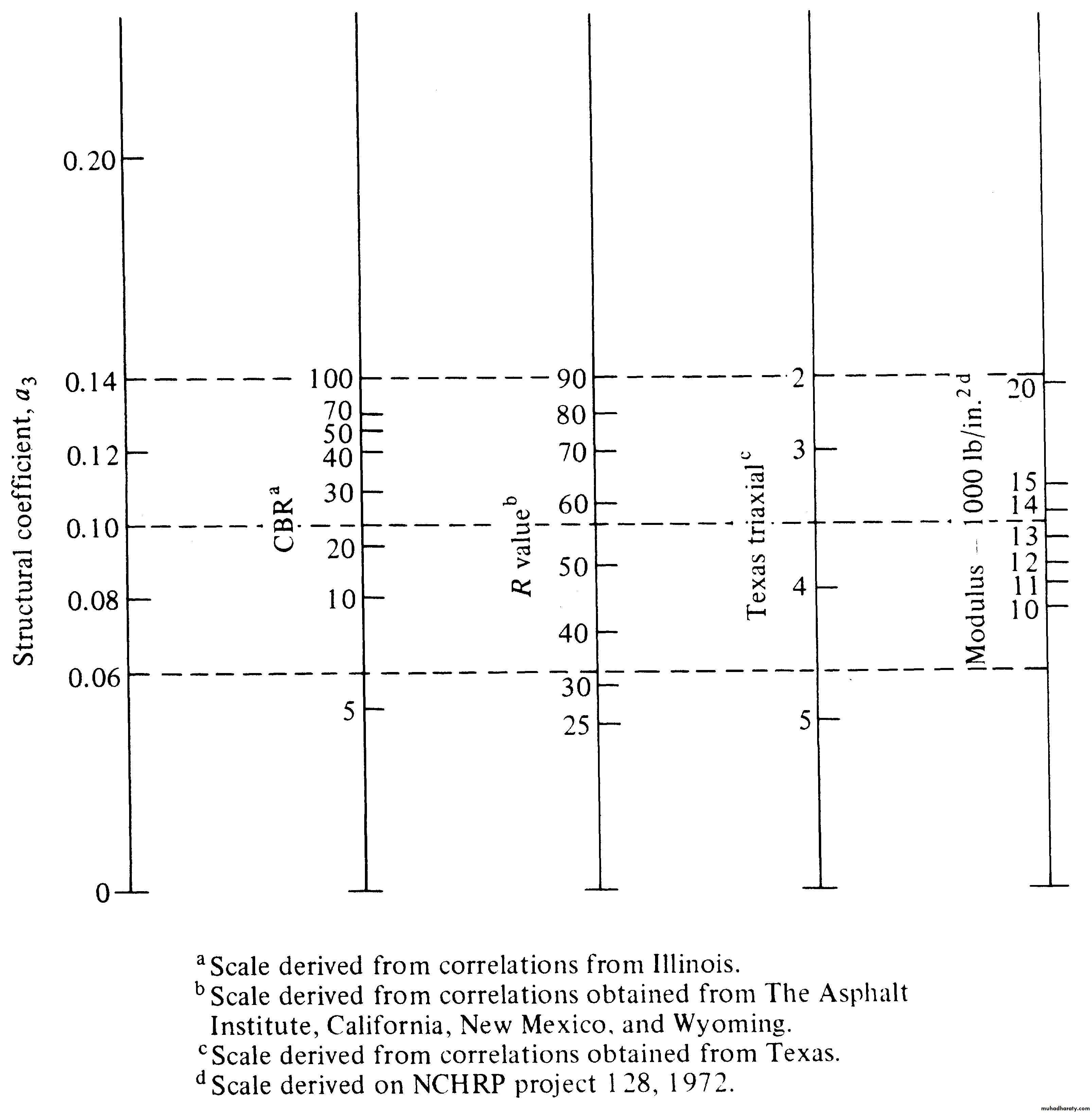 Note : Mr (lb/in2) = 1500 CBR (for fine-grain soils with soaked CBR of 10 or less)