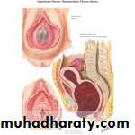 Diagram of hematometra and hematocolpos with imperforate distal transverse vaginal septum