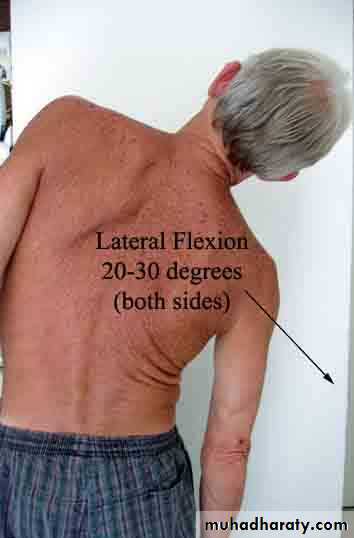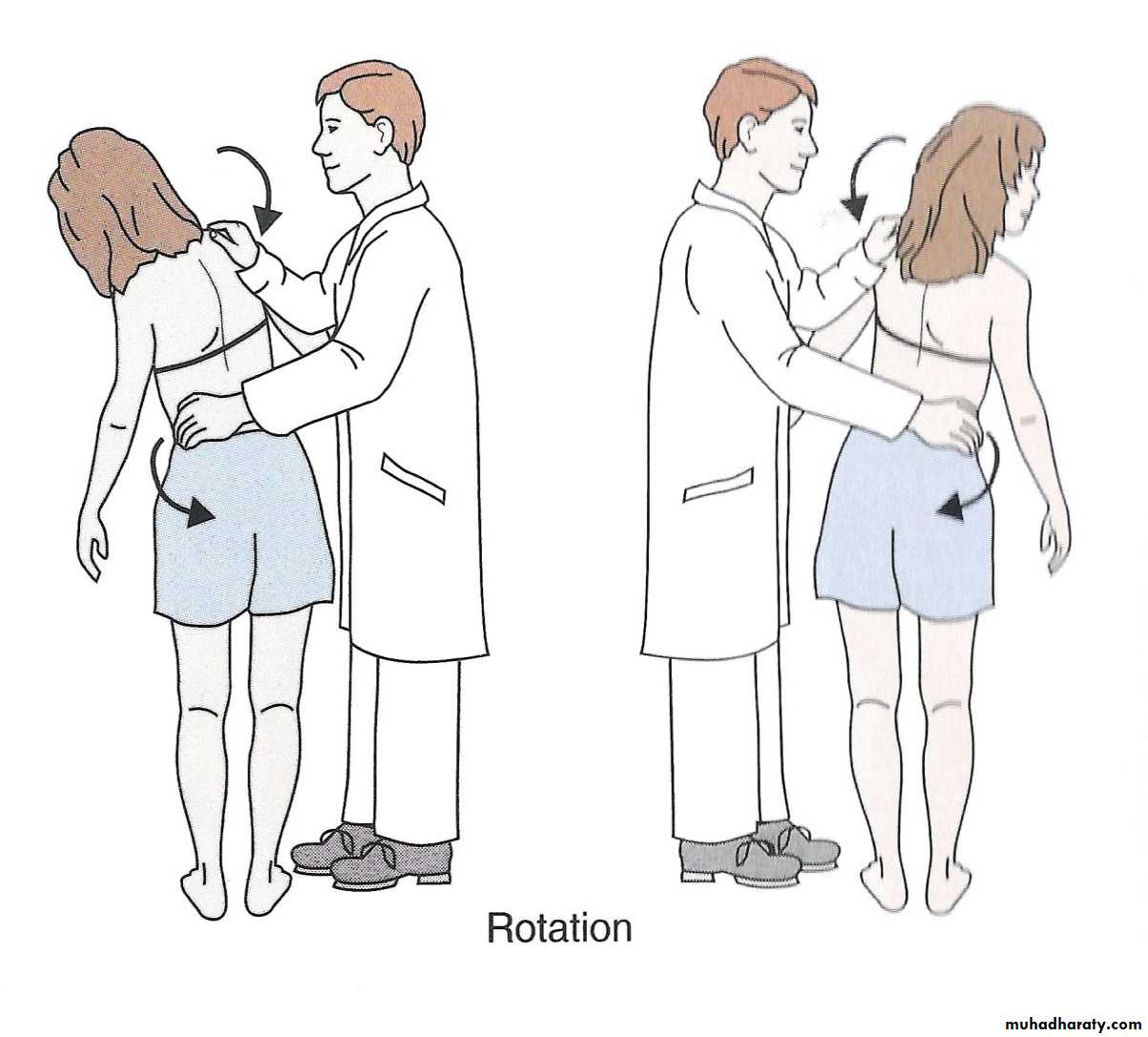 It is important to Judge what proportion of the movement occurs at the spine and how much IS contrIbuted by hIp flexion Some patients can almost reach their toes, despite a stiff back,