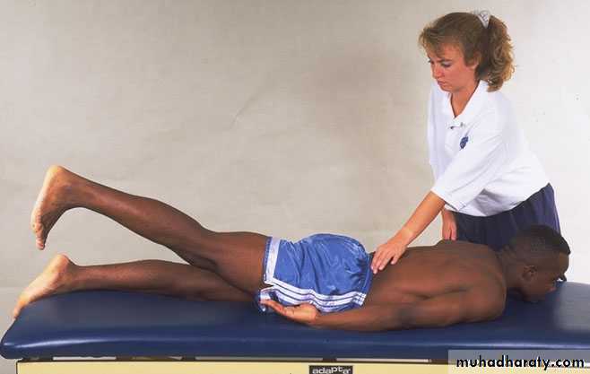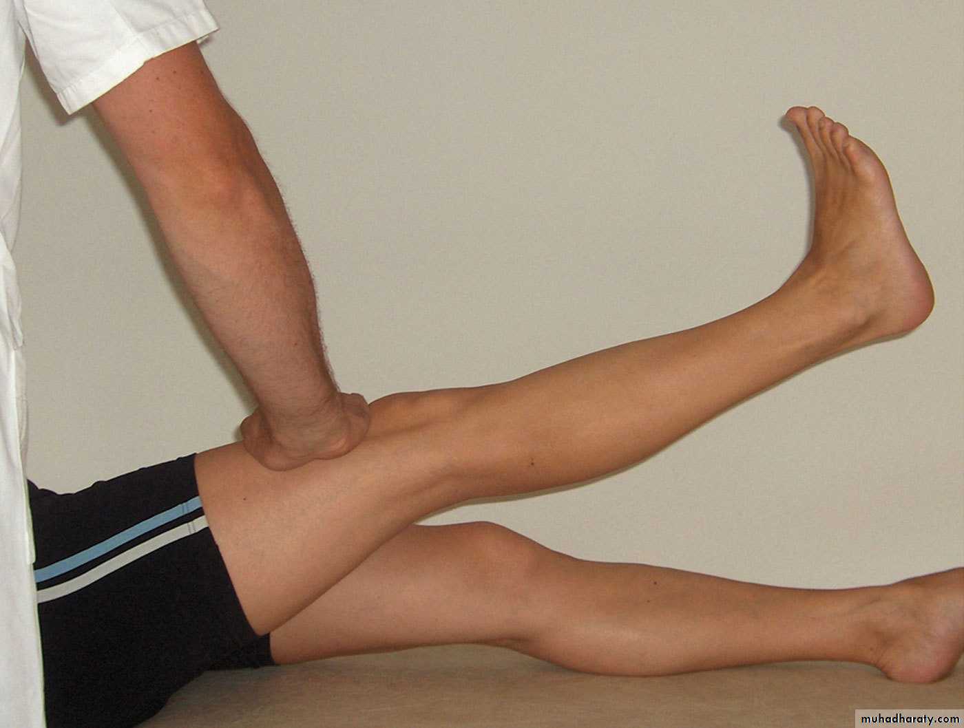 Instruct the patient to stretch his fingers towards hIs toes, keepIng the knees straight.