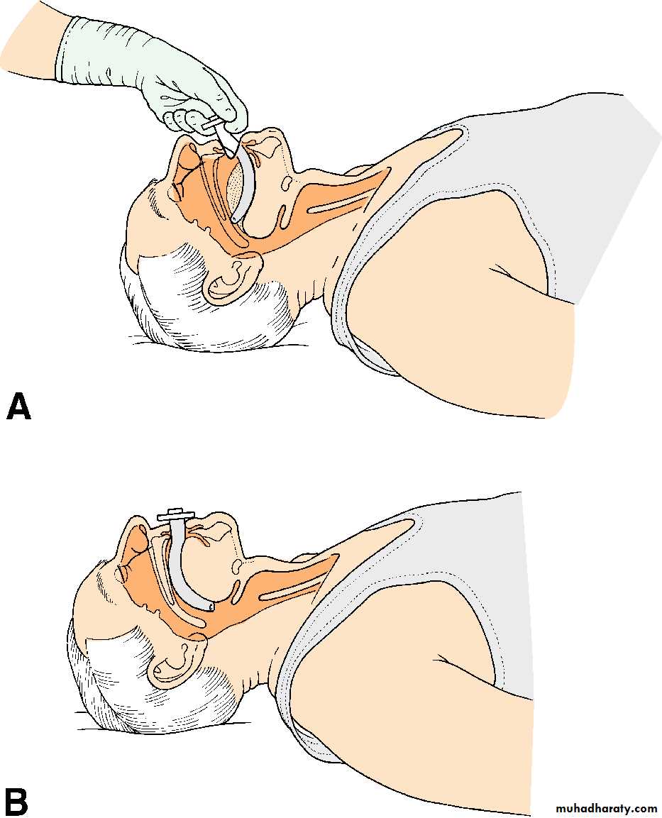 A irway – ensure open airway by preventing the falling back of tongue, tracheal intubation