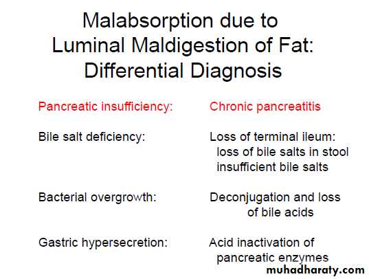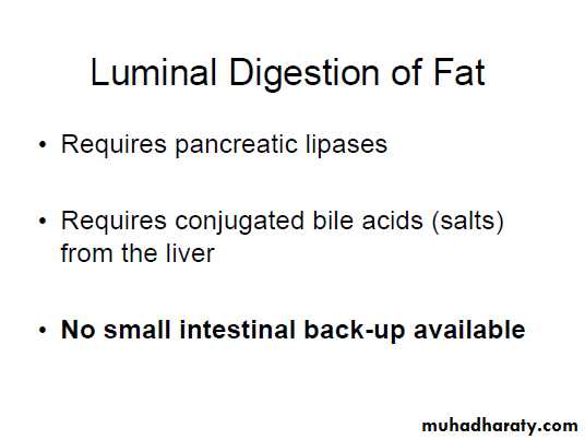 Impaired hydrolysis and solubilization of nutrients in the small intestine.