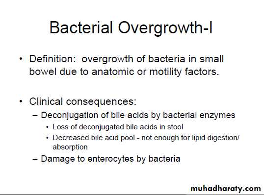 Bacterial over growth: Metabolize bile salt resulting in deconjugation of bile salt