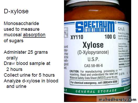 Serum level of D-xylose at 1-2 hours after ingestion can be measured.