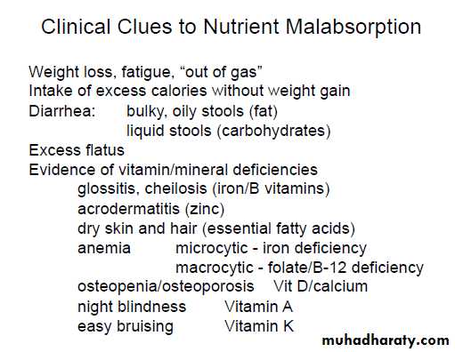 i) Vitamin B12 malabsorption if intrinsic factor is deficient. e.g. gastrectomy, antiparietal cell Ab.