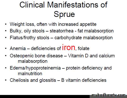 Diarrhea/steatorrhoea Weight loss Symptoms of anaemia