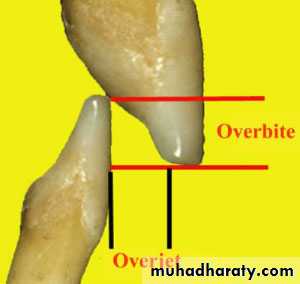 Over bite: the vertical distance between the incisal edges of maxillary and mandibular teeth.