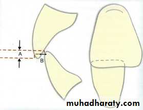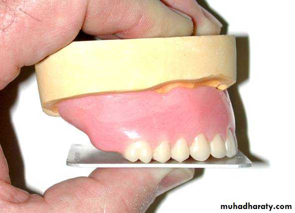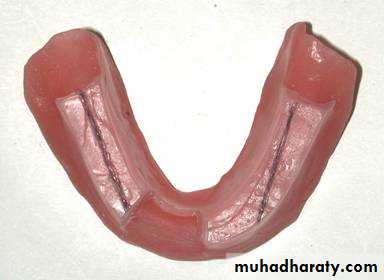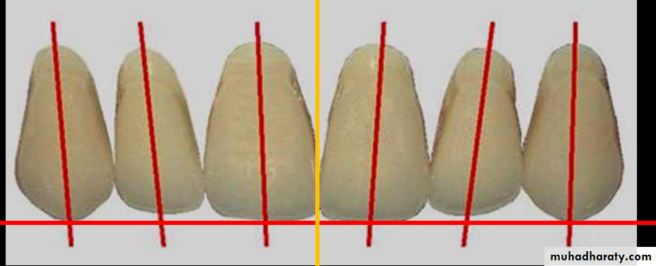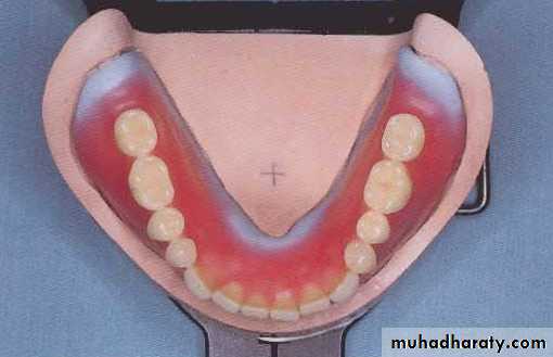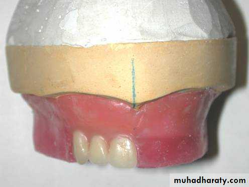 • The incisal edge should form (1-2mm) horizontal and vertical overlap in respect with upper central incisor (above the occlusal plane).