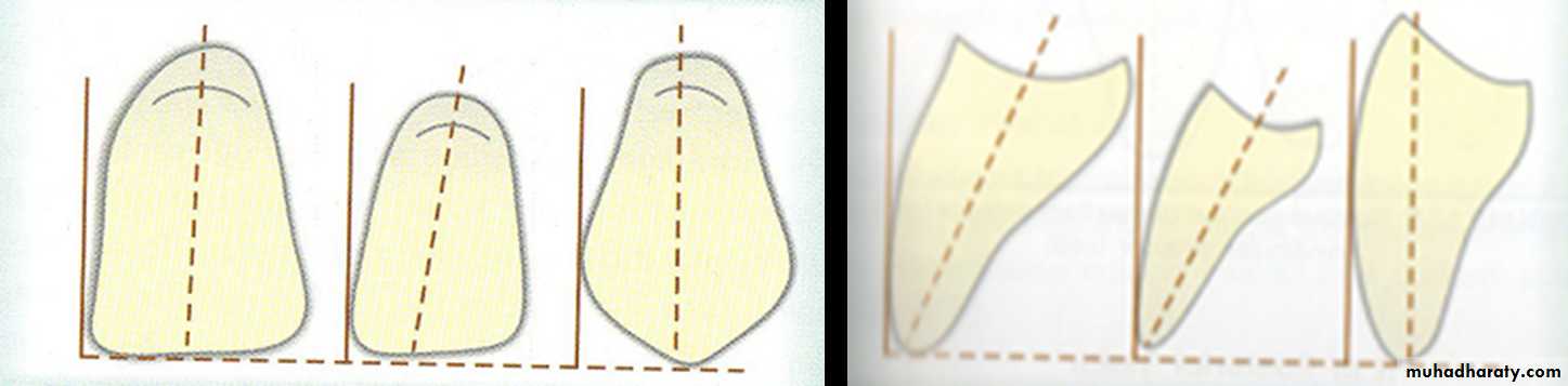 • Long axis slightly inclined mesially.