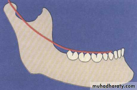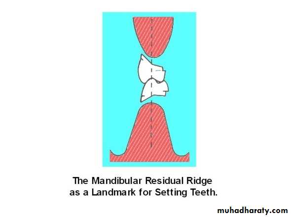 Mandibular posterior teeth positioned along a line extending from the tip of canine to the middle of retromolar pad. This line should pass through the central fossa of mandibular premolars & molars