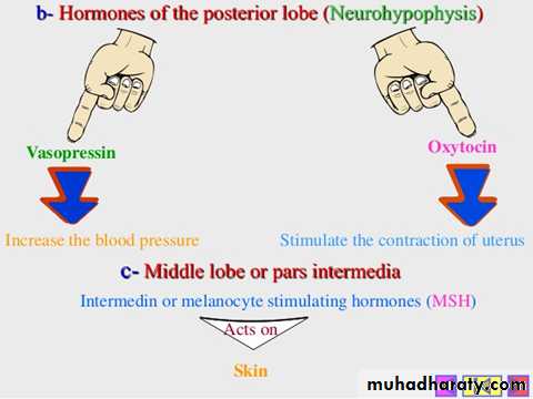 Also called melanotropin hormone. Are a family of peptide hormones produced by the skin, pituitary gland and hypothalamus in response to ultraviolet (UV) radiation that are produced by cells in the intermediate lobe of the pituitary gland.The main function: