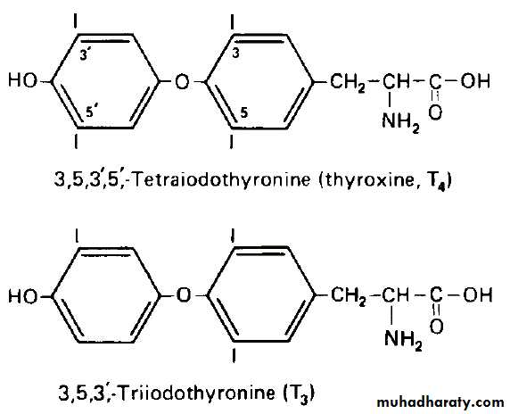 T3 and T4 are partially composed of iodine. A deficiency of iodine leads to decreased production of T3 and T4, enlarges the thyroid tissue and will cause the disease known as simple goitre.
