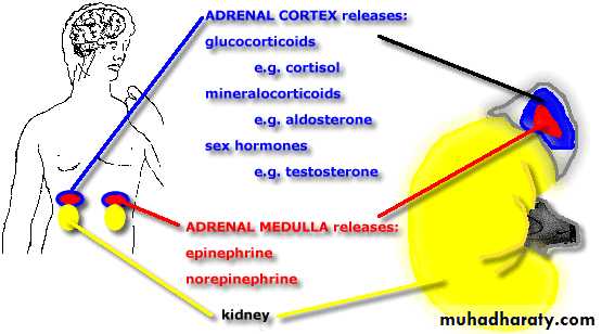 Adrenal gland:-1- Adrenal medulla.2- Adrenal cortex.
