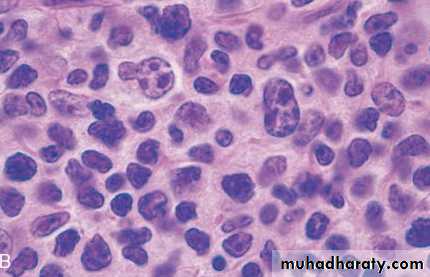 Frequent L&H (popcorn cell) variants in a background of follicular dendritic cells and reactive B cells;Complication of HODGKIN LYMPHOMA