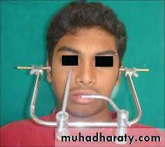 It is placed on the face, with the graduated condylar rods located in a line extending from the outer canthus of the eye to the top of the tragus of the ear & approximately 13mm in front of the external auditory meatus.