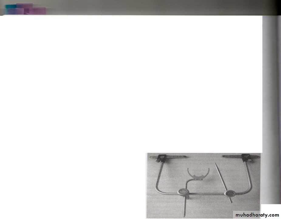 It is placed on the face, with the graduated condylar rods located in a line extending from the outer canthus of the eye to the top of the tragus of the ear & approximately 13mm in front of the external auditory meatus.