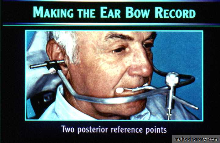 Both the face-bow & the ear-bow may use the infraorbital notch ( infraorbital pointer)or the incisal plane as the anterior reference point( or the nasion).
