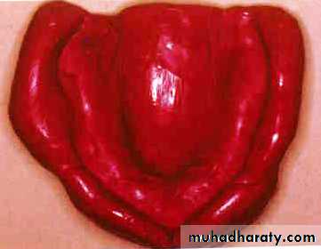 “ Its an imaginary line lying at the junction between the immovable tissues over the hard palate and slightly movable tissues of the soft palate ”• The anterior vibrating line is cupid bow shaped due to projection of posterior nasal spine.