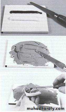 Impression waxes are rarely used to record complete impressions but are normally used to correct small imperfections in other impressions, particularly those of the zinc oxide/eugenol type.They are thermoplastic materials which flow readily at mouth temperature and are relatively soft even at room temperature.