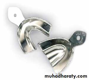 Stock non perforated metal impression trayThe form of the tray correspond the form of residual ridge as closely as possible