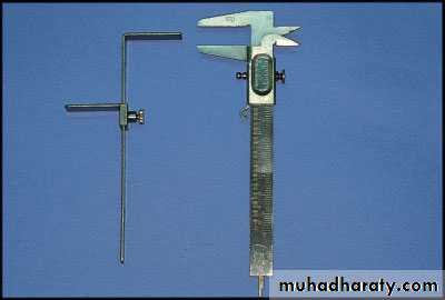 Measurement of a fixed landmark of the face by a special scale called the sorenson profile scale. The Sorenson Profile Scale measurement was taken by placing the nasion locator of the instrument firmly in the depression at the bridge of the nose and raising the chin seat until it lightly touched the most inferior and anterior border of the chin. Or by using Willis bite gauge which is designed to measure the distance from the pupil of the eye to the rima oris and the distance from the nasal spine to lower border of the mandible when measurement is equal the jaw at rest.Recording the occlusal vertical dimension (mechanical methods):
