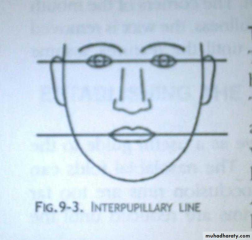 In normal relaxed position the lips are even anteroposteriorly and in slight contact. If the face appears strained the vertical height may be more. If the corners of the mouth droop, making the chin appear too close to the nose, then vertical dimension may be too less.