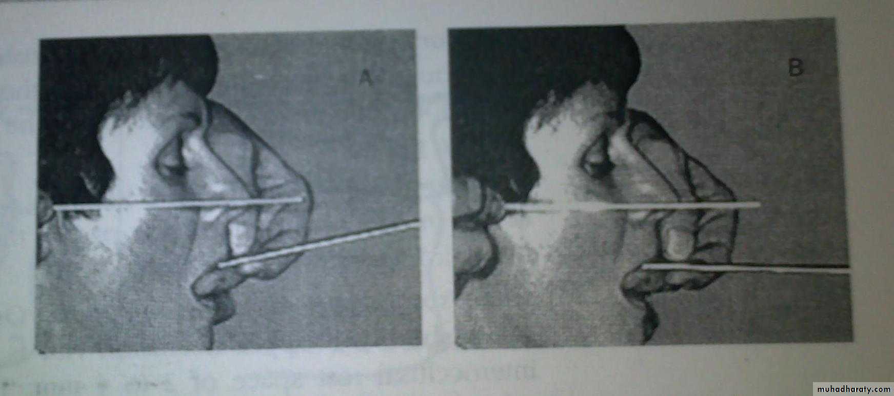 1. Instruct the patient to stand erect andopen the jaws wide until strain is felt in the muscles.