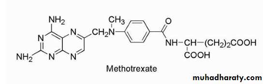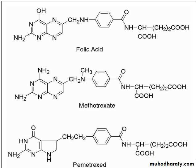 Methotrexate is the classic antimetabolite of folic acid structurally derived by N-methylation of the para-aminobenzoic acid residue (PABA) and replacement of a pteridine hydroxyl by the bioisosteric amino group.