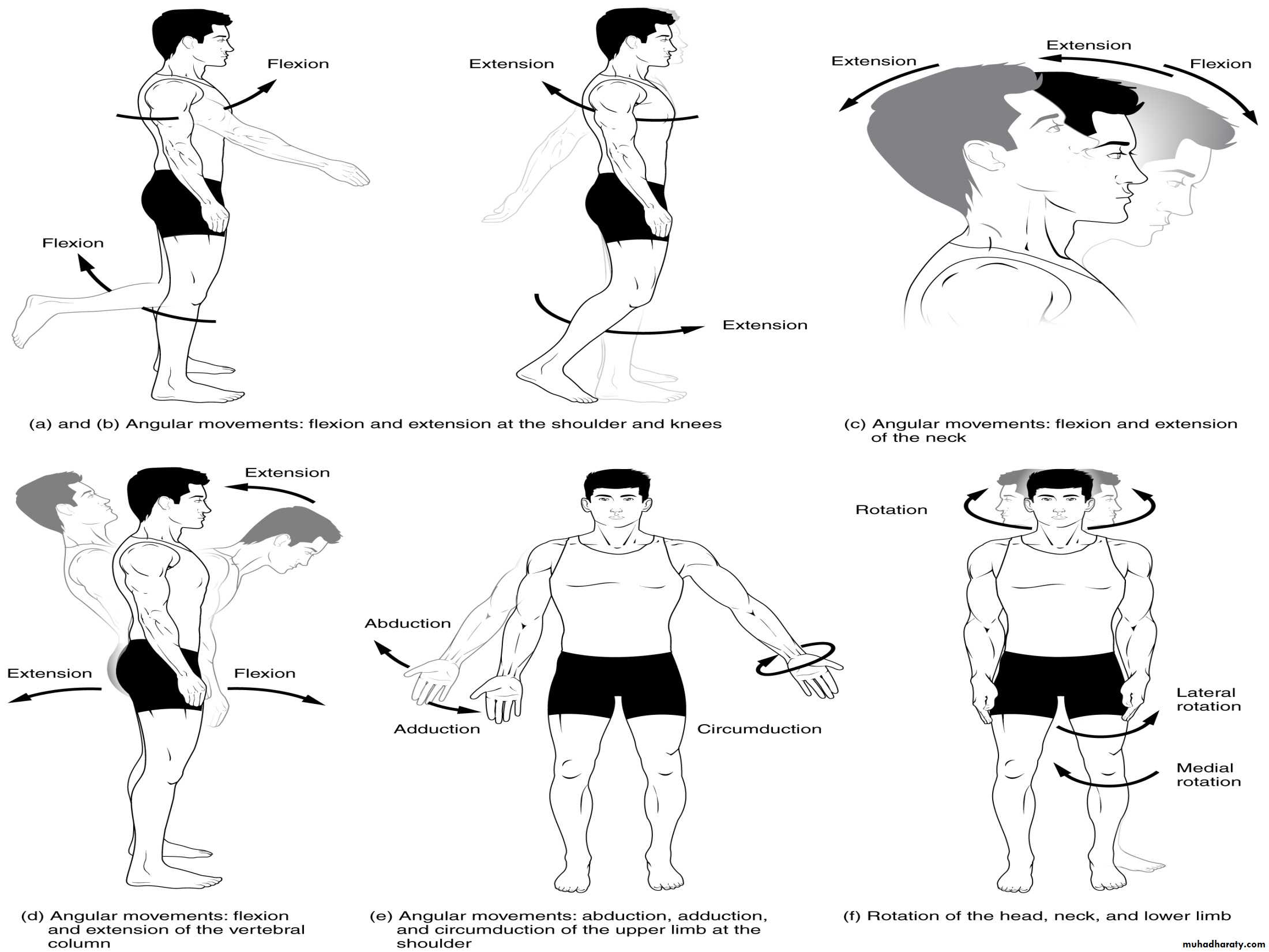 Flexion is a movement that takes place in a sagittal plane. For example, flexion of the elbow joint approximates the anterior surface of the forearm to the anterior surface of the arm. It is usually an anterior movement, but it is occasionally posterior, as in the case of the knee joint.Extension means straightening the joint and usually takes place in a posterior direction.