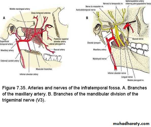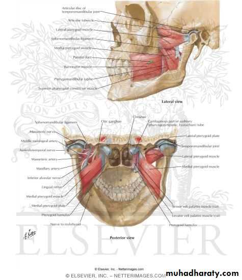 • muscles of mastication “Inferior part of the temporalis muscle, Lateral and medial pterygoid muscles”• Maxillary artery and Mandibular nerve.
